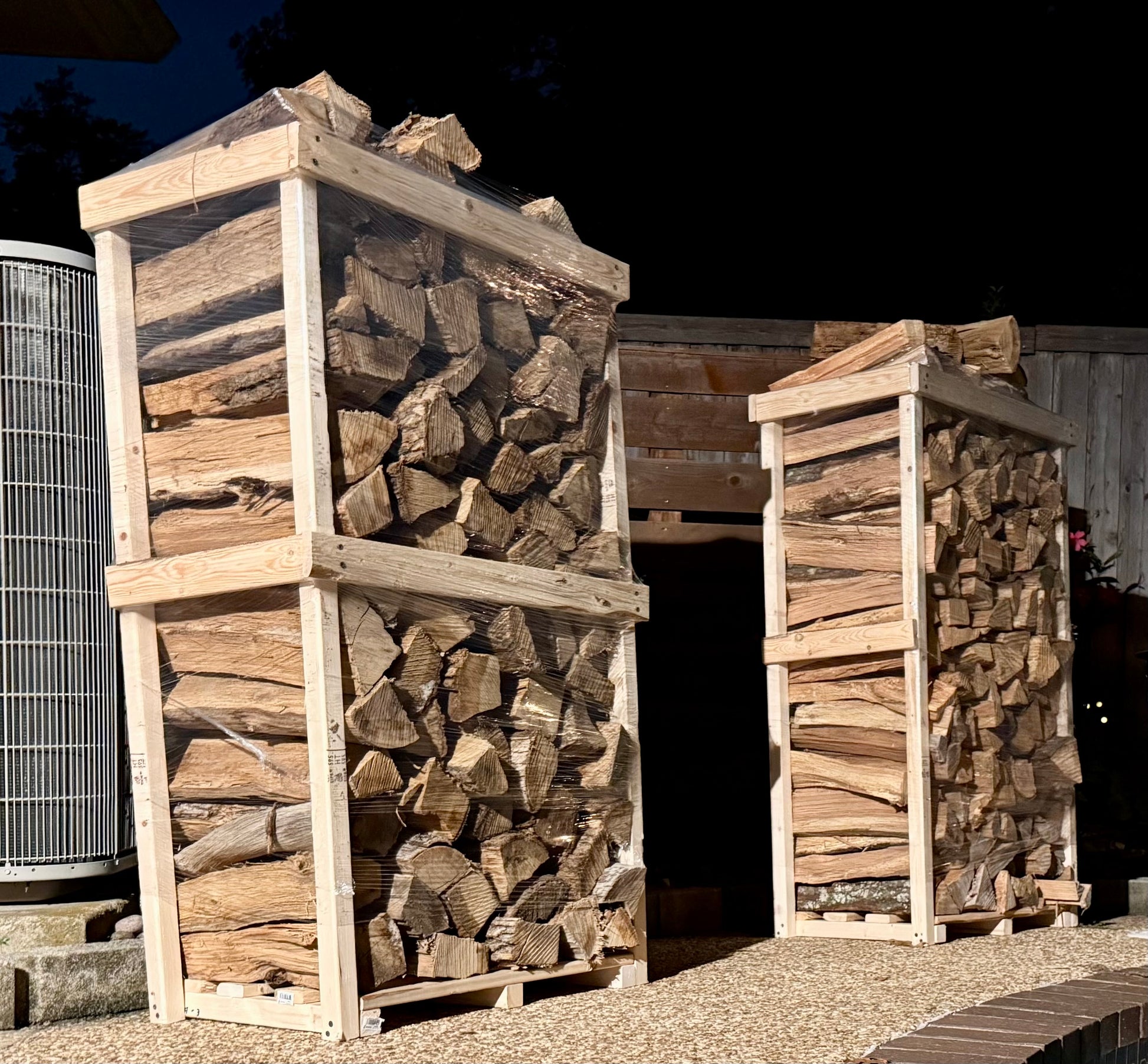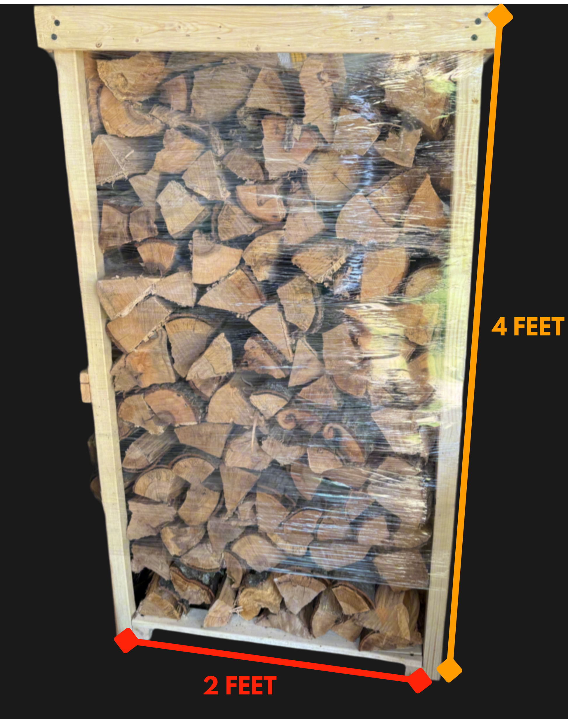 Your firewood arrives neatly stacked in our custom-built wooden rack, designed to keep your wood dry, off the ground, and ready to use the moment it is delivered. The rack is yours to keep, adding both convenience and a polished look to your firewood storage.